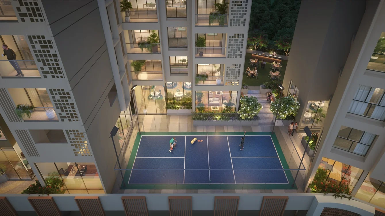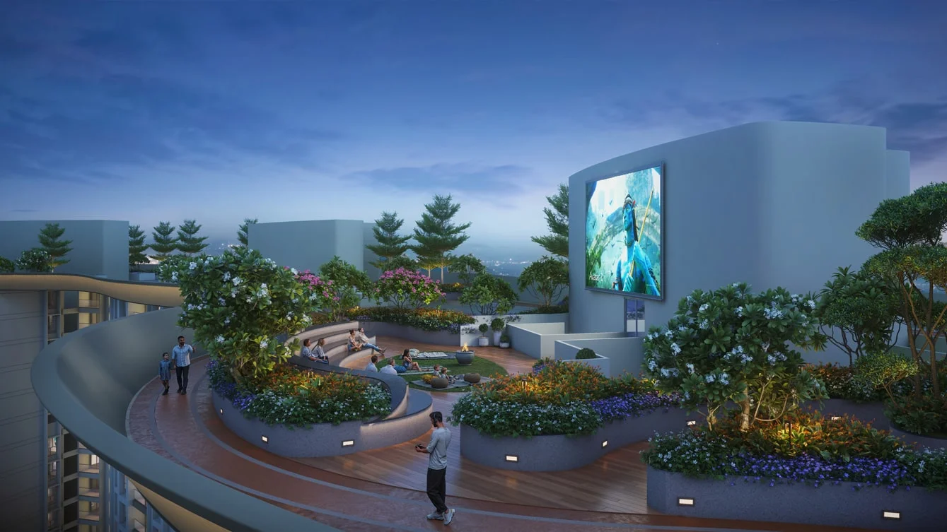 Live in meticulously designed 2 & 3 BHK Flexi Homes, surrounded by next-level experiences—a 300m Sky Jogging Track suspended 100m above ground, Pune’s first personal Pickleball Court, and over50,000 sq. ft. of Sky Roof amenities including a Cabana Loungeand vibrant Celebration Zones.